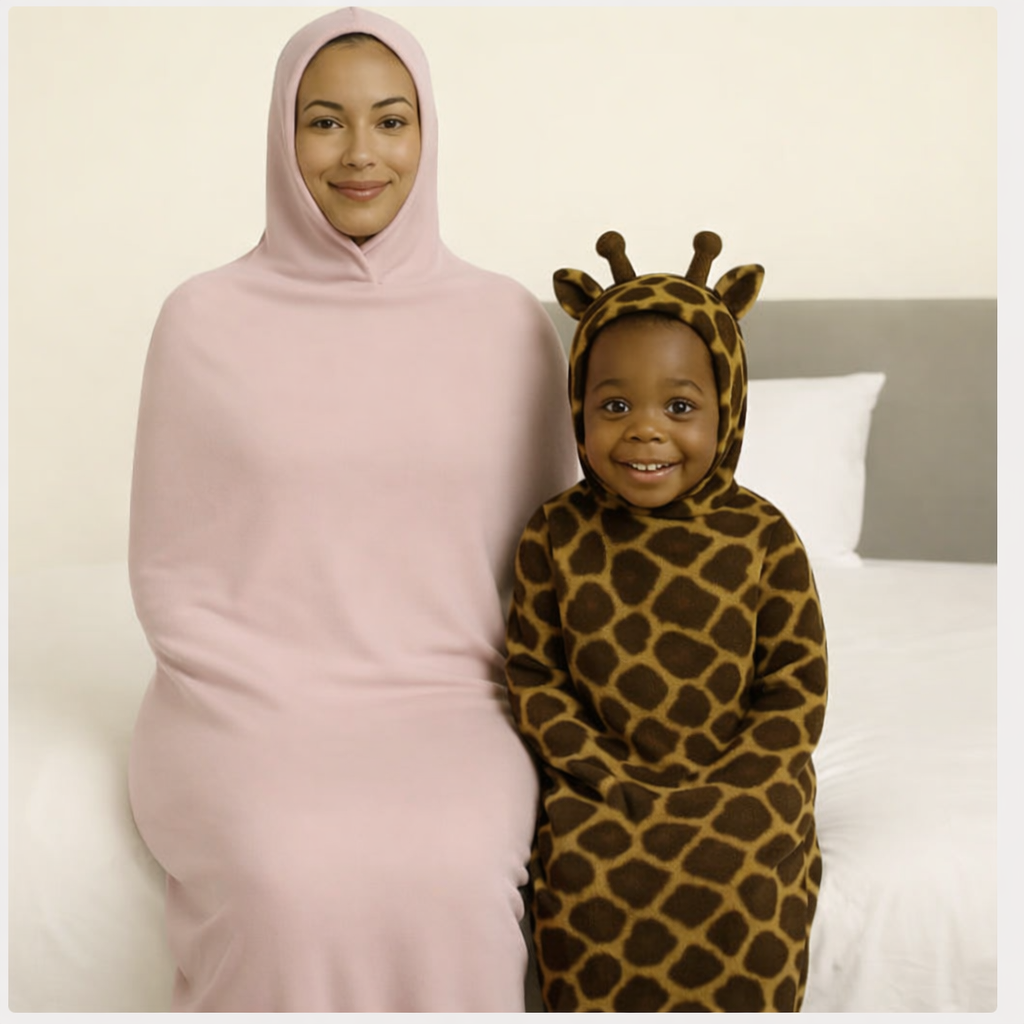 The Travel Clean Pod™ Family Bundle includes one Adult Pod and one Children’s Pod, giving you everything you need for a clean, comfortable rest on the go. Designed for modern travelers, each pod acts as your personal hygiene barrier—keeping you and your little one safe, warm, and relaxed from takeoff to bedtime.